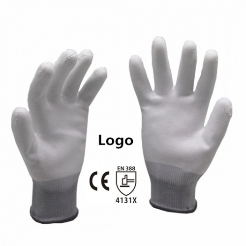custom logo work gloves pu cheap reusable grey pu palm coated safety gloves skid resistance dexterity for gardening yard work